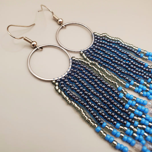 Sold outBluebird Sky Small Hoops with Fringe