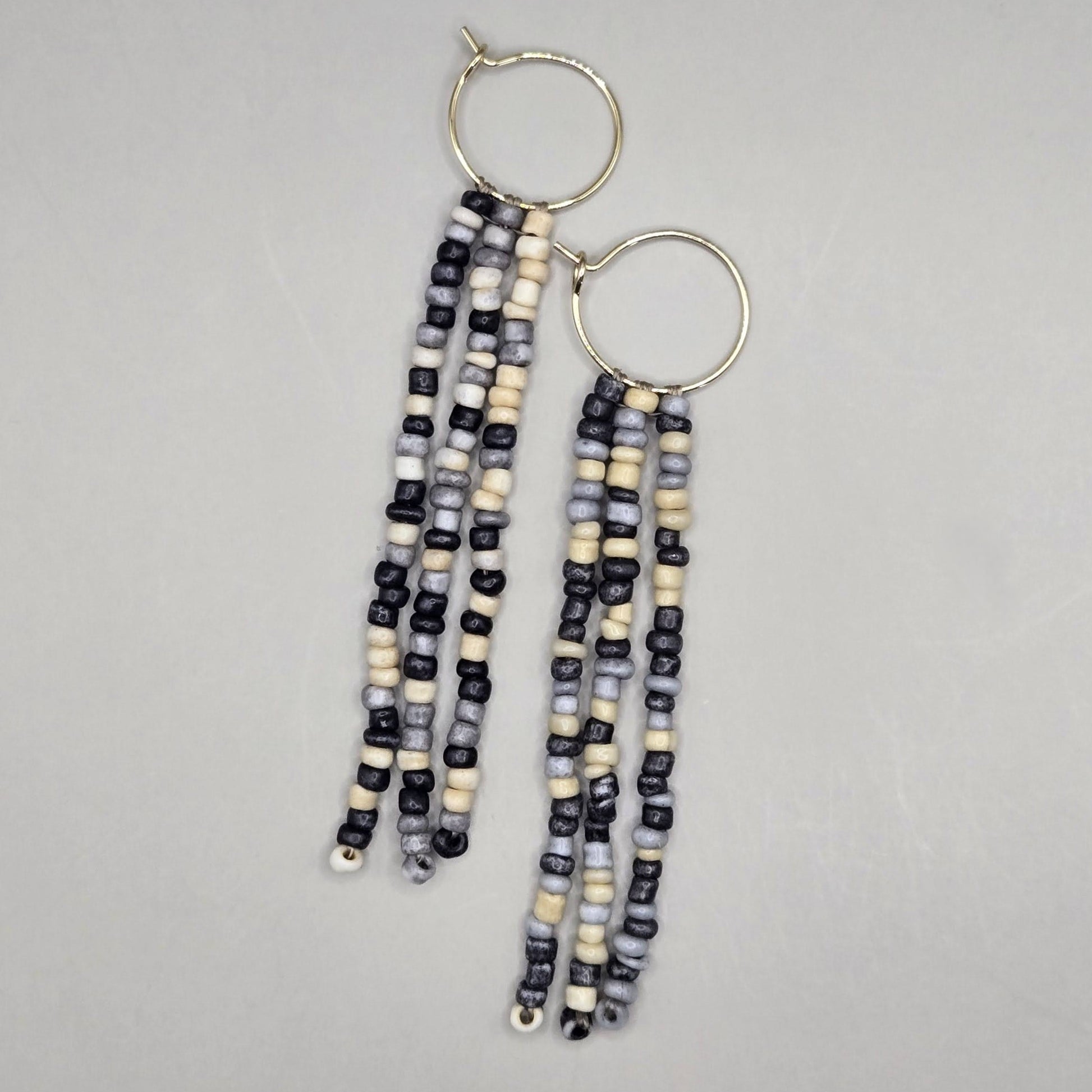 Small round wire hoops are 1.5cm in diameter and will hang 2 3/4 inches with the 3 fringes.